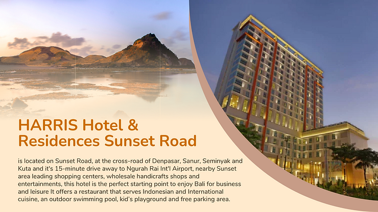 HARRIS Hotel & Residences Sunset Road is a 15-minute drive from Legian Beach, the Sanur area and Bali Galeria Mall.