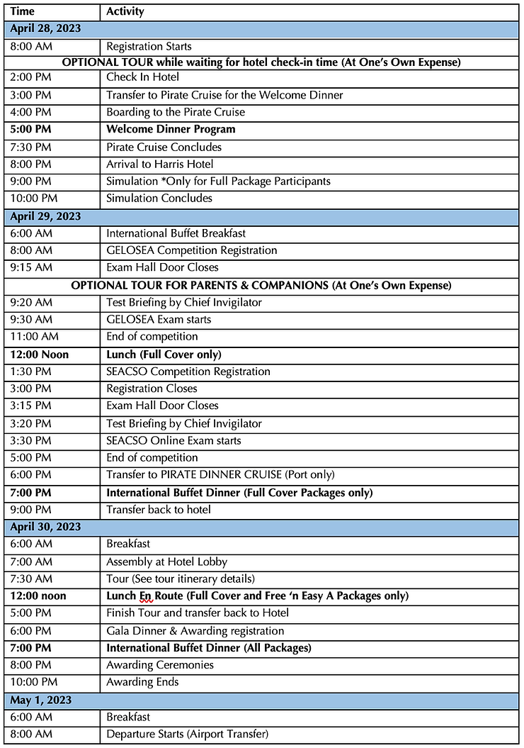 GELOSEA COMPETITION SCHEDULE AND GUIDELINES