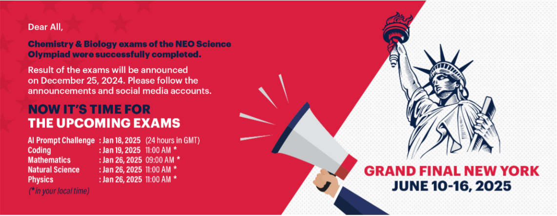 NEO Science Olympiad คือการแข่งขันคณิตศาสตร์และวิทยาศาสตร์ สำหรับนักเรียนระดับชั้นประถมศึกษาปีที่ 3 ถึง มัธยมศึกษาปีที่ 5 (Grade 3-11) International NEO Science Olympiad มีวัตถุประสงค์เพื่อส่งเสริมความเป็นเลิศในด้านคณิตศาสตร์และวิทยาศาสตร์ และมีความมุ่งมั่นที่จะให้รางวัลแก่ความสามารถ ความถนัดที่โดดเด่นของเด็ก ๆ ในวิชานั้นๆ